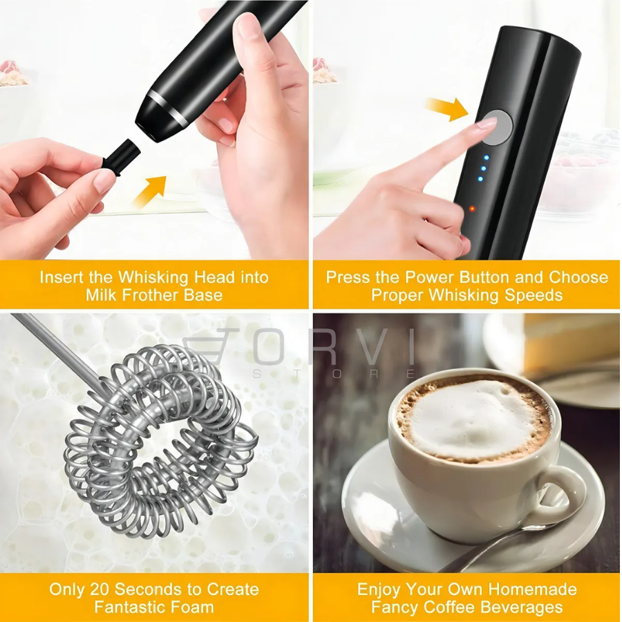 Características: • COLOR ALEATORIO SEGÚN DISPONIBILIDAD • Material: Plástico y metal • Tamaño Aprox. Producto: Batidor: 27 x 3 cm / Accesorio para batir huevo: 12 cm / Accesorio para mezclar bebidas: 15 cm • Peso Aprox: 95 g • Funcionamiento: Recargable USB. • Hacer espuma de leche no tardará más de 20 segundos, quedando perfecto para mezclar con el café. • Perfecto para batir huevos y preparar deliciosas recetas como pasteles, tortillas, cremas y más. • Sistema graduable de 3 potencias para adaptar el artefacto a tus necesidades culinarias. • Diseño liviano ideal para llevar a universidades, oficinas o días de campo. • Portabilidad y fácil ensamblaje para guardar en gavetas de la cocina ocupando mínimo espacio. • Ideal para heladerías, restaurantes, cafés, bares y más. • Accesorio perfecto para aprender diferentes recetas culinarias y preparar platillos para la familia.