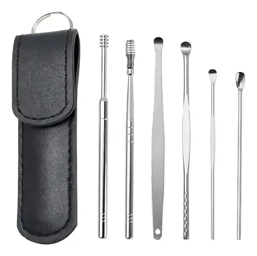 Este completo kit de limpieza auditiva está diseñado para una higiene segura, efectiva y ecológica. Incluye varias herramientas de acero inoxidable con diferentes puntas que permiten remover cerumen de forma precisa, sin necesidad de usar hisopos desechables. Viene con un elegante estuche portátil para llevarlo a cualquier lugar.