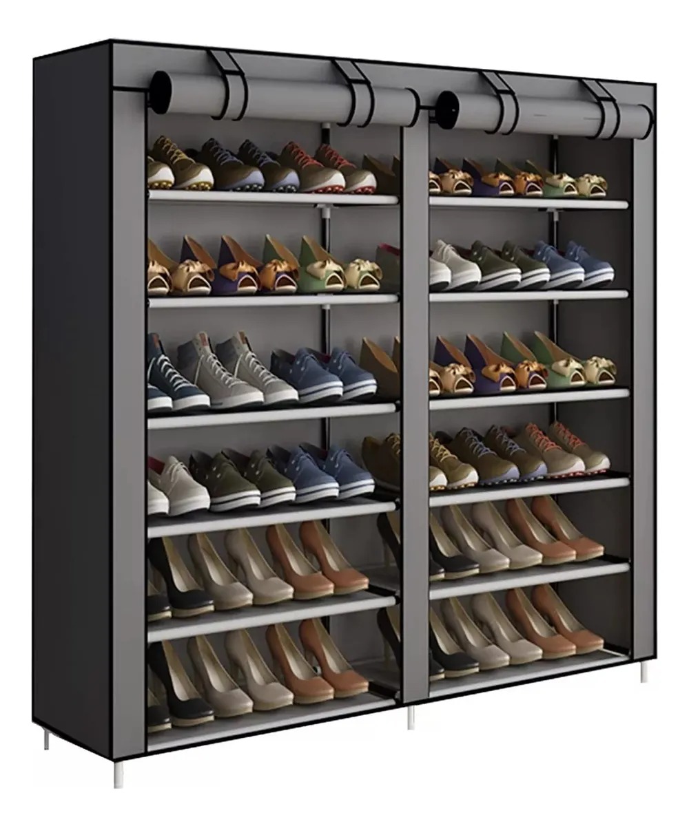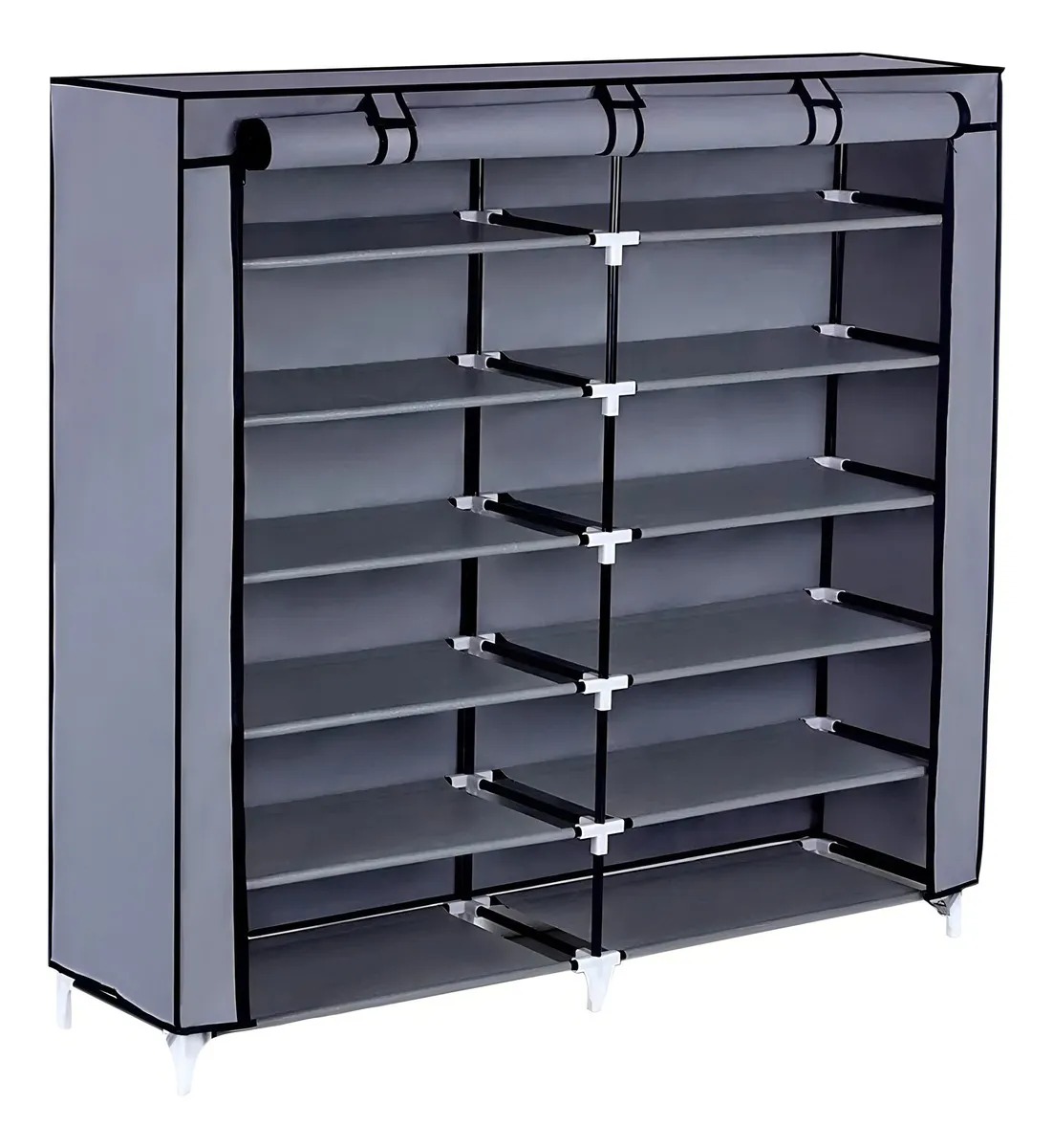 -Sus zapatos ya no estarán desordenadamente colocados en el suelo, sino ordenadamente acomodados en el zapatero.Puerta con cremallera y velcro para proteger sus zapatos del polvo.